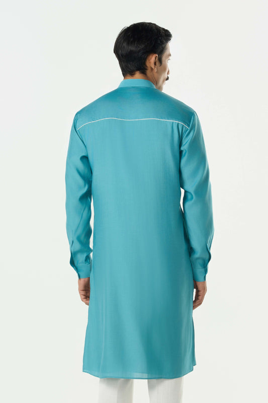 Geo Block Kurta - Teal Blue