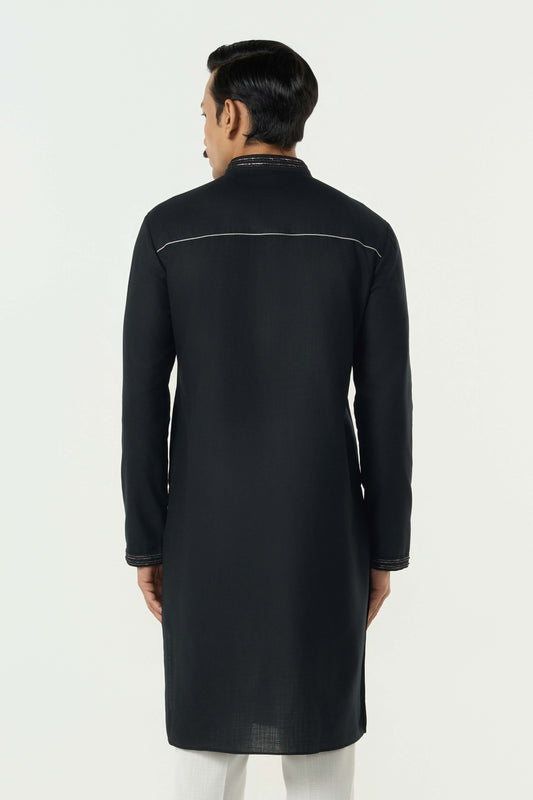Geo Frame Kurta - Black