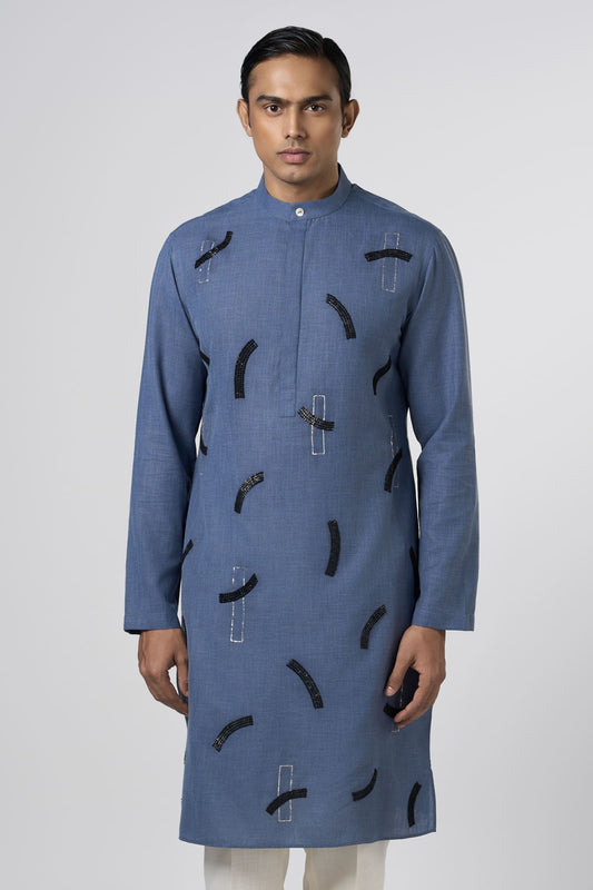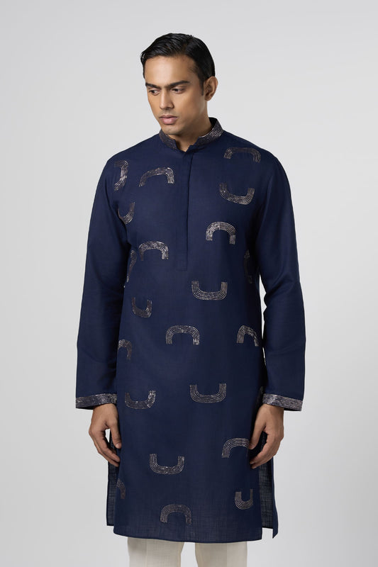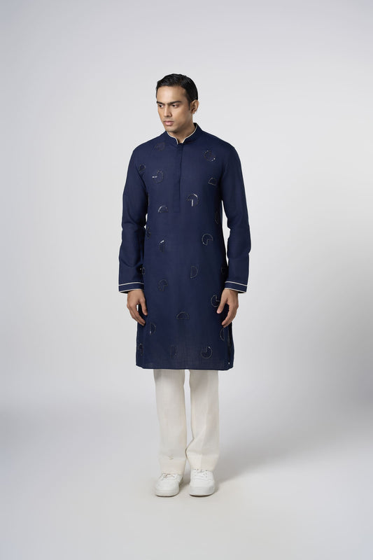 Meta Grid Kurta - Navy Blue
